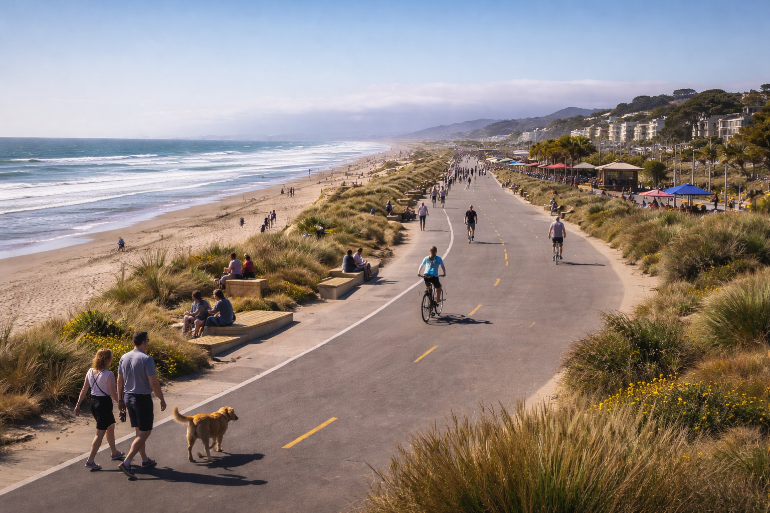What used to be the Upper Great Highway is now a wide-open promenade stretching from Lincoln Way to Sloat Boulevard, where the sounds of traffic have been replaced by waves, laughter, and the occasional skateboard rolling by. The shift is more than cosmetic. It represents a different way of thinking about public space, one that prioritizes people over cars and experience over convenience.